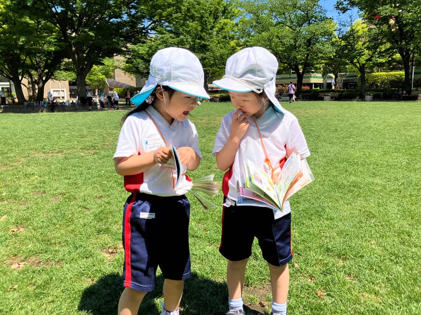 朝のごあいさつから始まり、遊びや学びを通じてのびのび過ごす子どもたちの一日をご紹介しています。