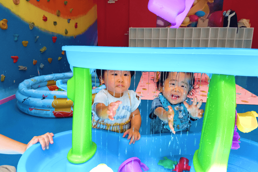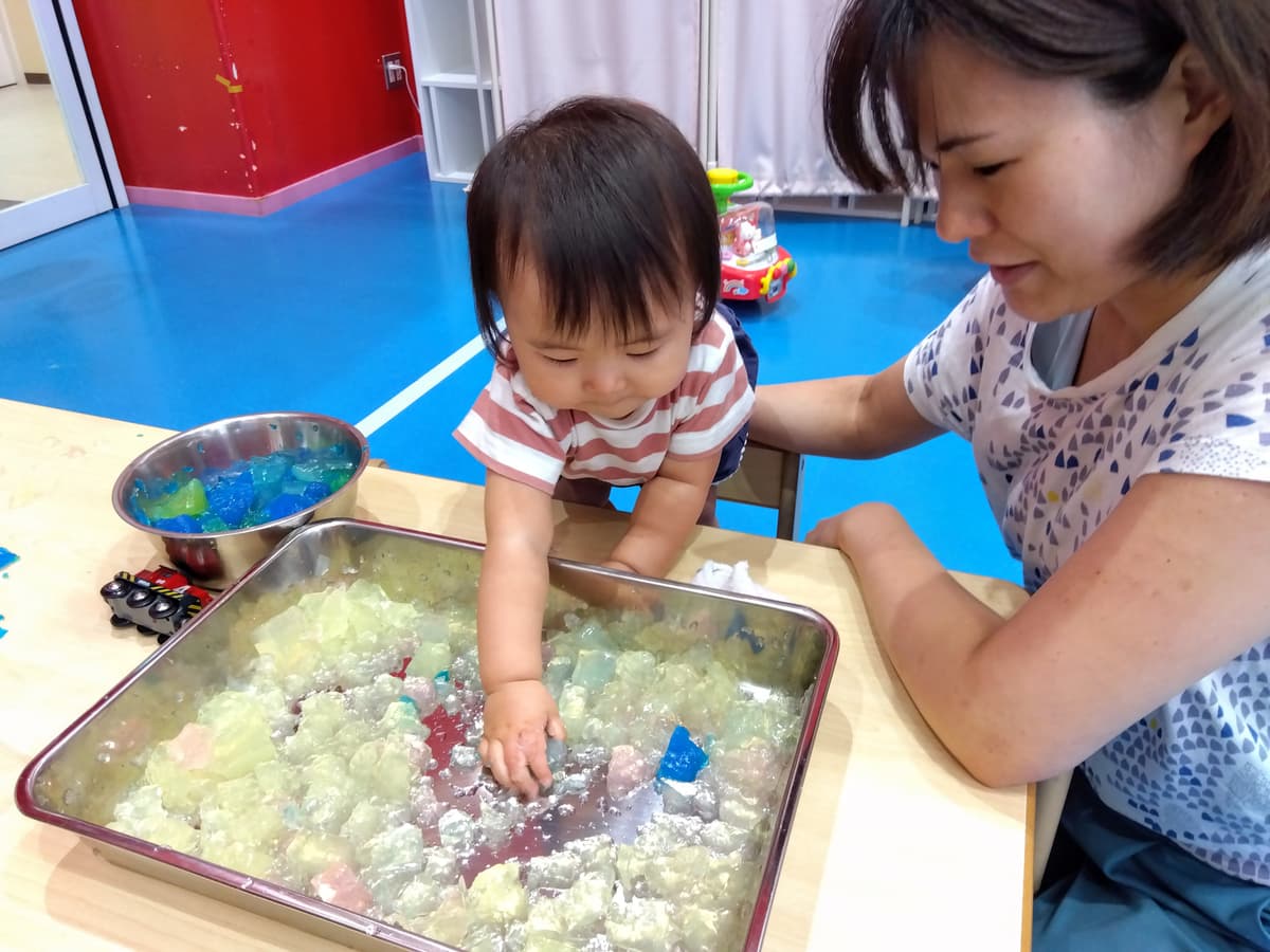 この時期の子どもの発達に重要な五感を刺激する感触遊びを行っています。